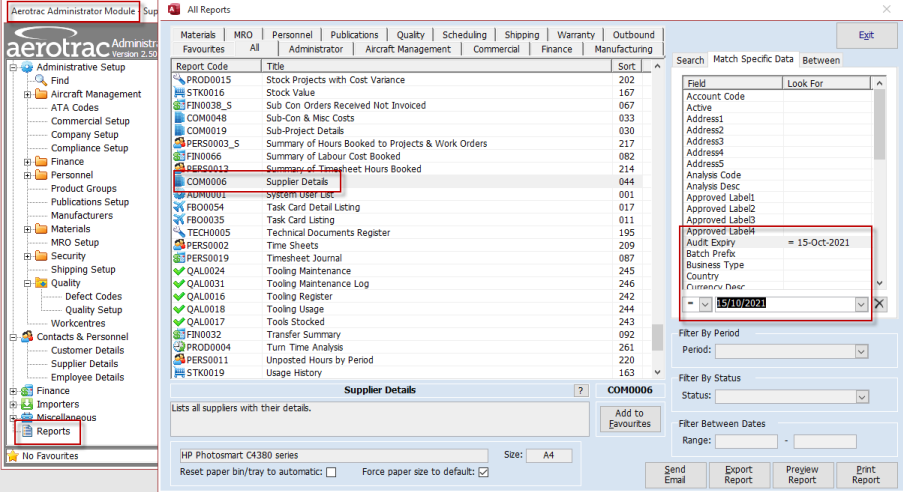 The Basic Auditing uses the COM0006 - Supplier Details report which has an "Audit Expiry" filter :-