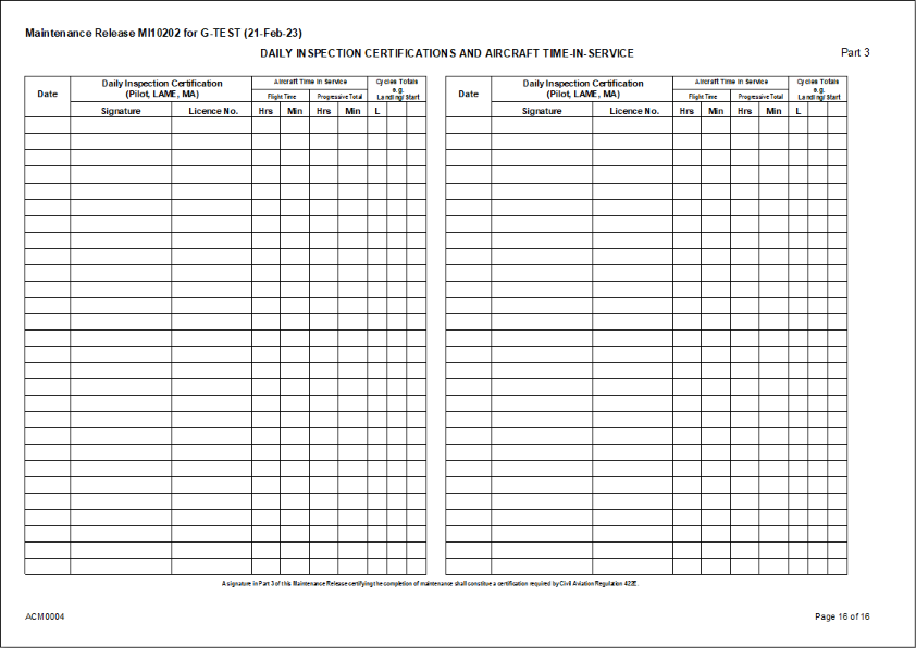 With the above set, enter the required date in the "CAR Date" field on the "Continuing Airworthiness Requirements" tab :-